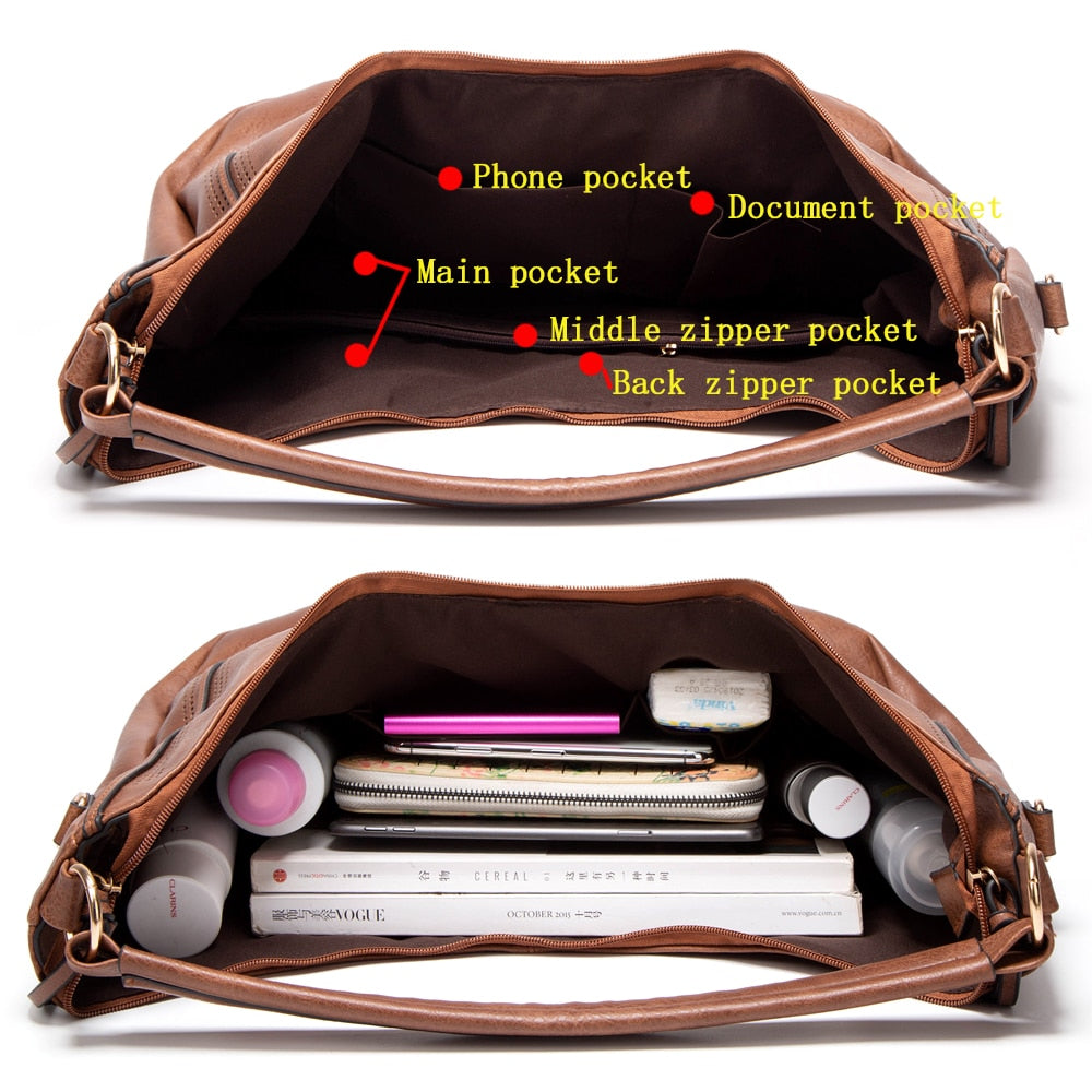 Black Tracy Vegan Leather Shoulder Cross Body Hobo/ Large Tote Bag